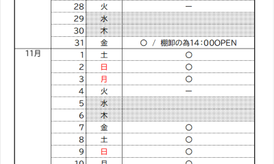 10月21日(火)~11月20日(火)黒田プロ出勤日のご案内
