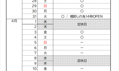 3月21日(土)~4月20日(月)黒田プロ出勤日のご案内
